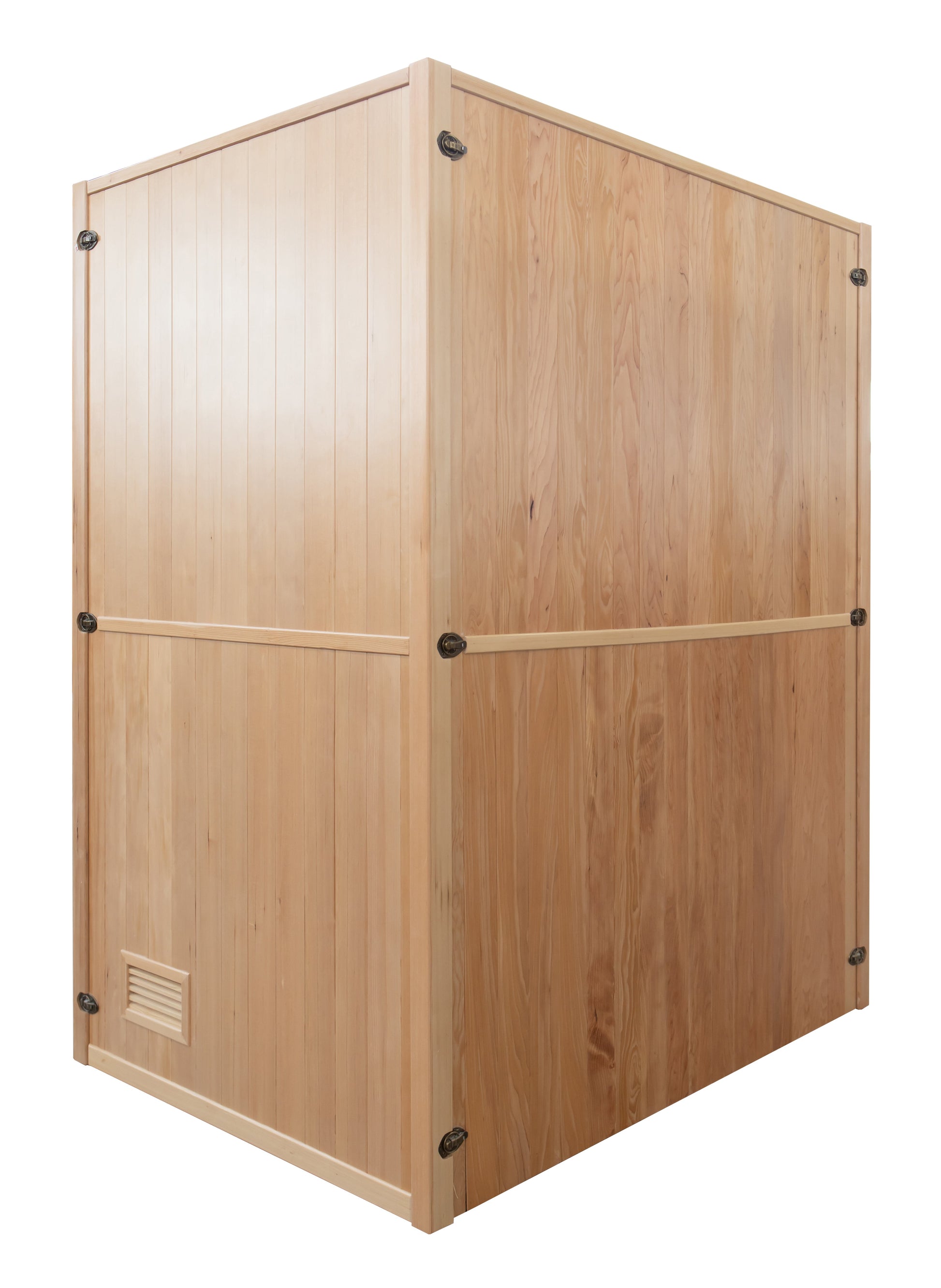 Kabinen är tillverkad i 100% kanadensisk gran från hållbart skogsbruk. Träet är naturligt aromatiskt och har god motståndskraft mot temperaturvariationer samt naturliga antibakteriella egenskaper.