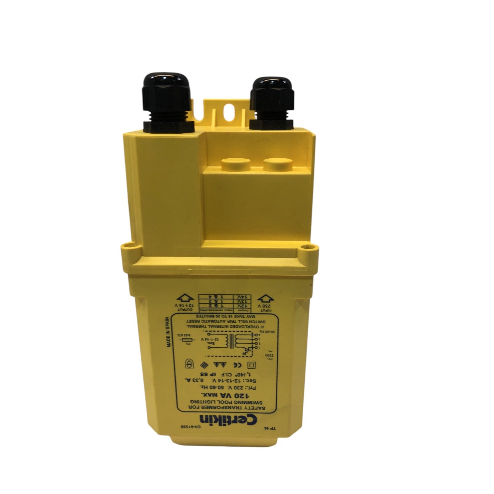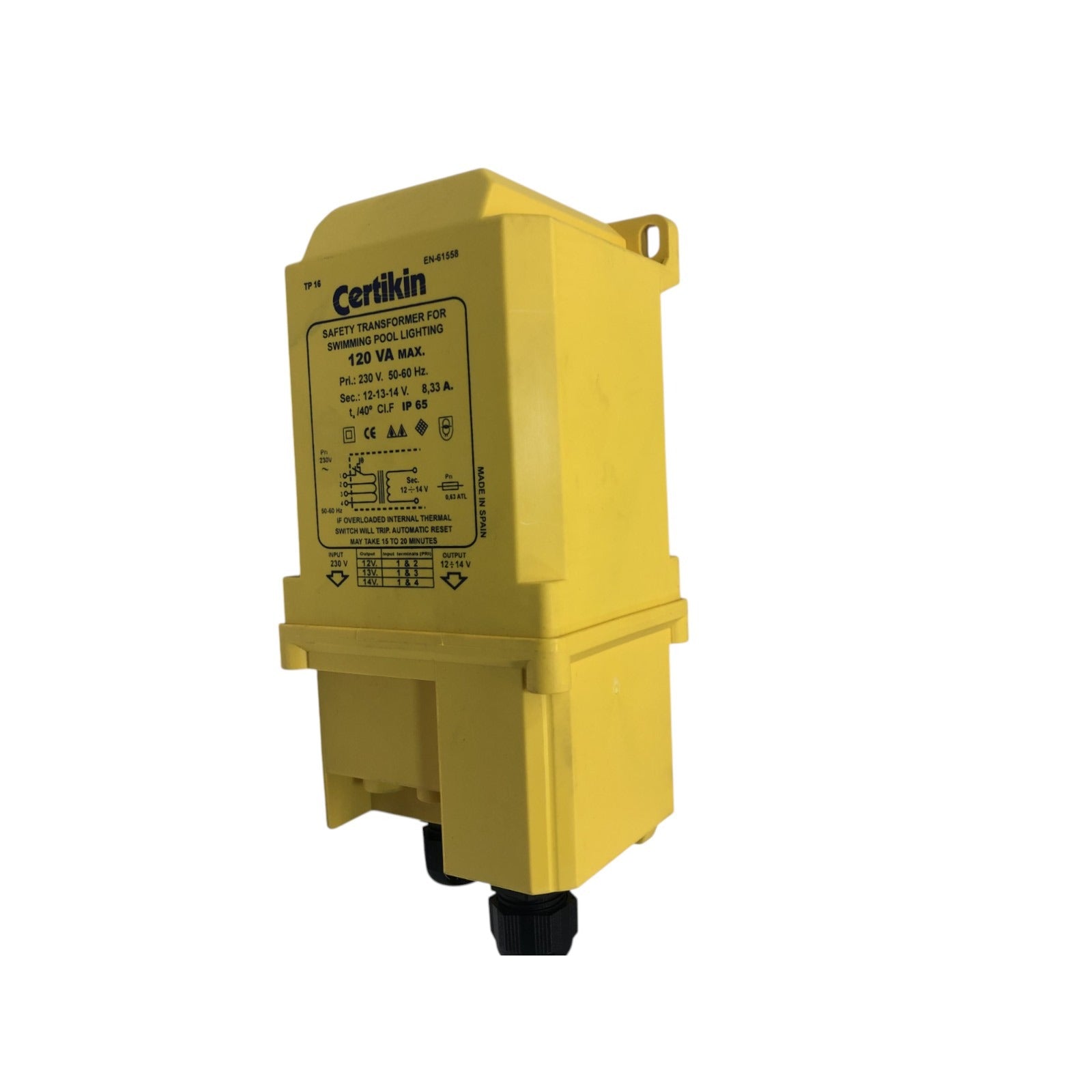 SEO-optimerade nyckelord: Certikin säkerhetstransformator, 120VA transformator pool, PU11120TY, poolbelysning transformator, Certikin transformator 120VA, säker elförsörjning pool, undervattenslampor transformator.